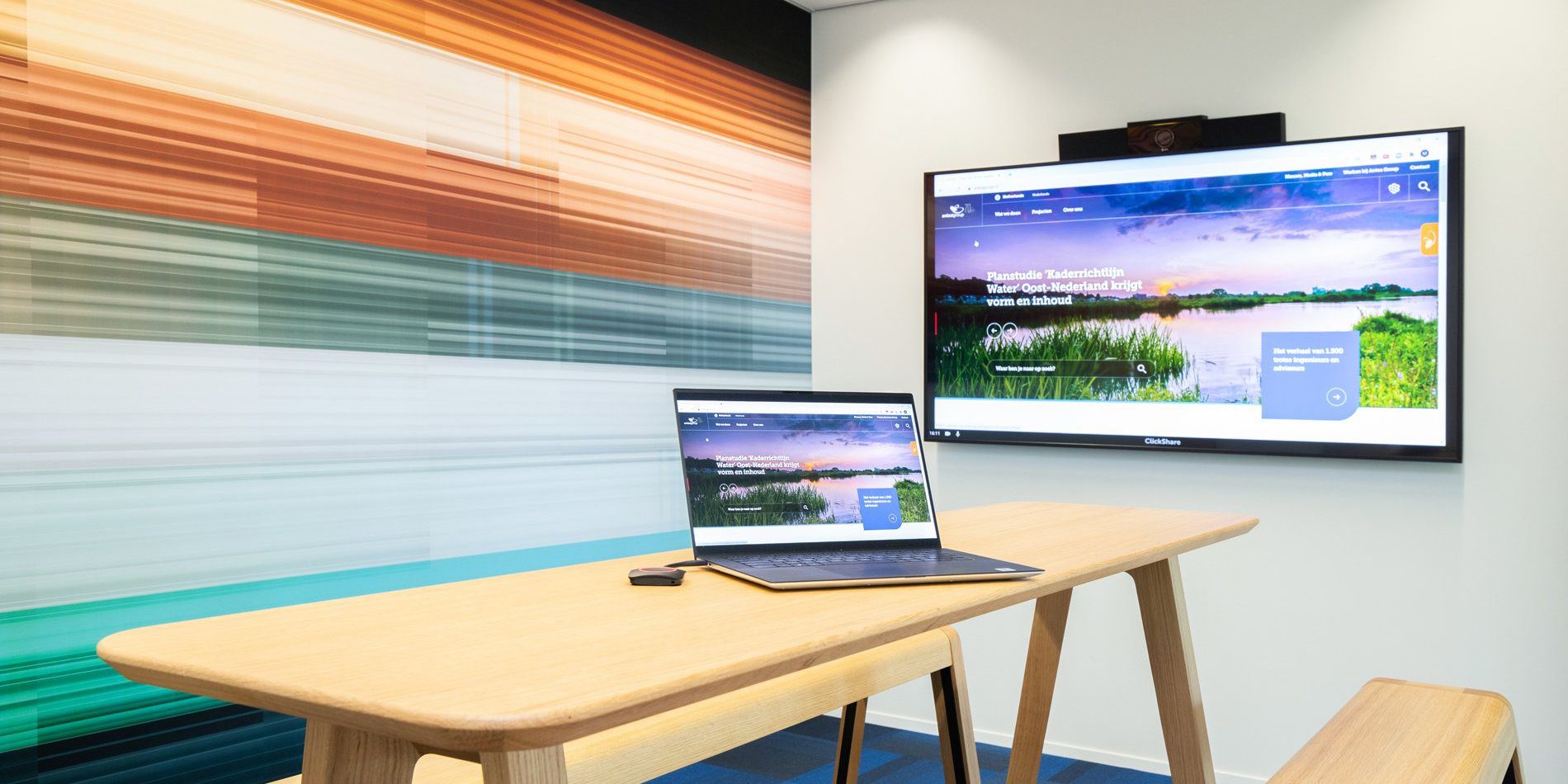 Officious voorzag de ruimtes van schermen, videobars, camera’s en microfoons. Via een Barco Clickshare Conference-oplossing kunnen medewerkers volledig draadloos alle apparatuur gebruiken. Dat past perfect bij de Microsoft Teams-omgeving waarmee Antea Group werkt. Marco Hannink, facility manager bij Antea: “Voor het beheer hebben we een Barco XMS beheerstool aangeschaft, zodat de huismeesters van de vestigingen de ruimtes kunnen beheren. Een huismeester uit Heerenveen kan dus ook de ruimtes in Oosterhout beheren.”